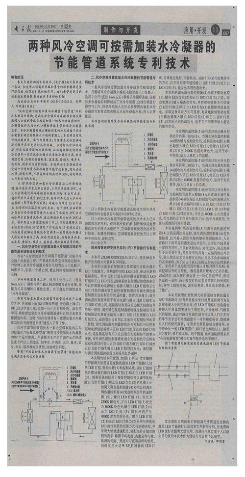 附件:1.《電子報》2013年10月20日刊發(fā)文章《兩種風(fēng)冷空調(diào)可按需加裝水冷凝器的節(jié)能管道系統(tǒng)專利技術(shù)》復(fù)印件