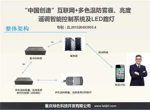 多色溫防霧霾、亮度遙調(diào)新一代LED路燈應用智能制造技術(shù)主要包括 “智能集中控制器”、“智能終端多色溫防霧霾、亮度可調(diào)控制器”、“多色溫防霧霾、亮度可調(diào)LED照明路燈”等硬件和“智能軟件編程”、“自動感應PM2.5傳感技術(shù)”、“溫度傳感技術(shù)”等新一代應用智能制造技術(shù),同時兼容其它路燈遠程智能控制系統(tǒng)功能。專利技術(shù)《互聯(lián)網(wǎng)+多色溫LED路燈、隧道燈六遙控制系統(tǒng)(ZL201520493805.4)》經(jīng)科技查新已獲得《科技查新報告》(報告編號:J201508016831),證明了是“中國創(chuàng)造”LED路燈應用智能制造獨一無二的先進技術(shù);該技術(shù)已列入《2015年度重慶市中小企業(yè)科技成果轉(zhuǎn)化項目》(渝中小企〔2015〕188號),并申請了LED智能控制技術(shù)重慶市工程研究中心【渝發(fā)改技〔2015〕1865號】。